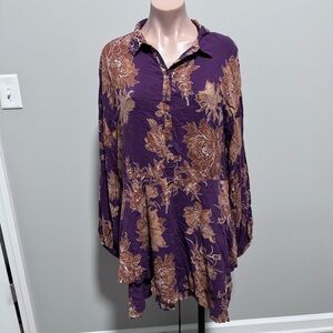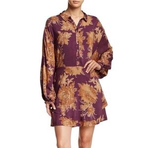 Free People Shake It Up Boho Floral Dress Berry Purple Flower Button Down Small