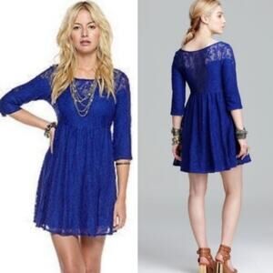 Make a statement in this blue mini dress from Free People. Featuring a boat neckline and 3/4 sleeves, this dress is perfect for a casual occasion. The dress is made of a mixture of nylon, cotton, and rayon with a solid pattern and embroidered accents. It has a straight hemline and is wrinkle-resistant, making it an ideal choice for travel.