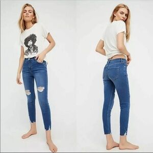 Free People Shark Bite Raw Hem Ripped Crop Skinny Jeans Distressed