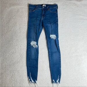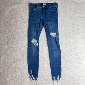 Free People Shark Bite Raw Hem Ripped Crop Skinny Jeans Distressed Size 24
