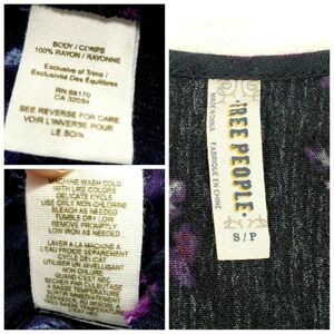 Free People Tank Top Tunic Size Small Navy Blue Floral Lace Ruffle Shark Bite Scoop Neck. Condition is excellent Pre-owned. Measurements in photos. Over sized Flowy Boho Look. Racer back, Scoop Neck.Comes from smoke free environment. No rips, holes or stains.