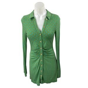 Free People Shayla Green Long Sleeve Printed Button Down Ruched Mini Bodycon Dress S