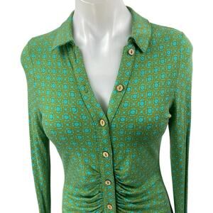 Free People Shayla Green Long Sleeve Printed Button Down Ruched Mini Dress S