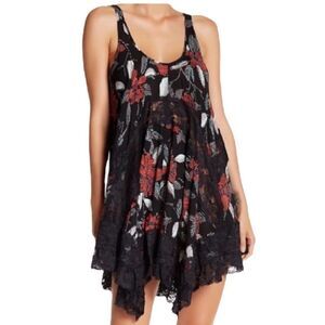 Free People She Swings Lace-Detail Slip Dress in Black Combo in XS