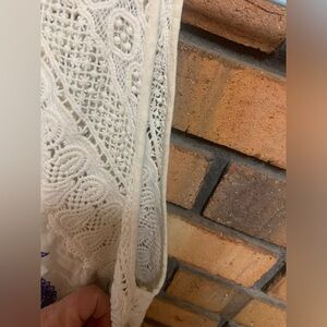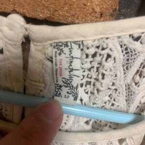Chic cream lace halter dress by Free People. Ideal for stylish outings. Very slight discoloration from wear as pictured above, very unnoticeable. Still has lots of life left! Size SP