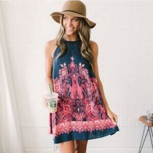 Free People Shea Printed XS Mini Boho Shift Dress