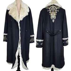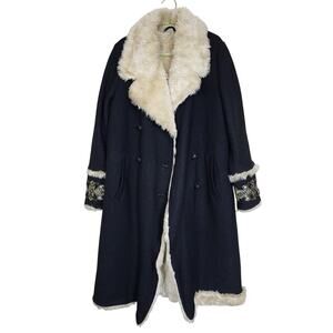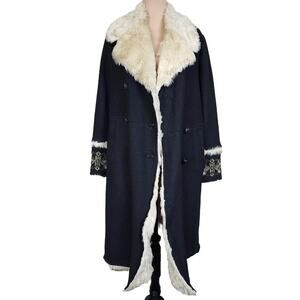 Free People Shearling Victorian Brocade Damask Trench Coat