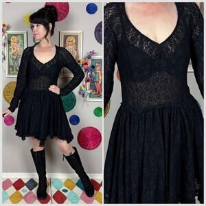 Free People Sheer Black Lace Long Sleeve Mini Dress