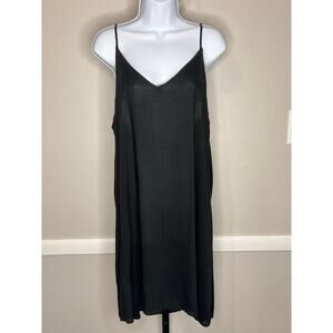 Free People Sheer Black Sleeveless V-Neck Slip Mini Dress Size Large NWOT