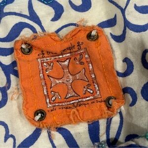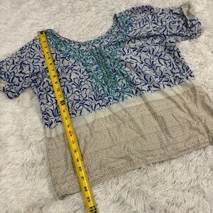 Free People Sheer Blue Cream Boho Print Embroidered Blouse Woman’s Small