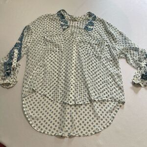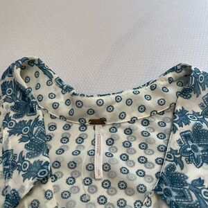 Free People Sheer Blue White Tunic Top Blouse Size Small