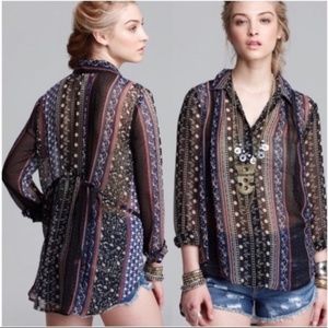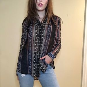 Like new, no damage or visible wear. Live out your boho fantasies in this darling sheer long sleeve button up! Great transition piece into fall, easily layered or worn alone.