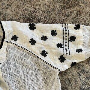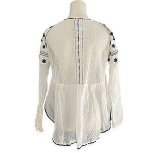 Free People Sheer Chiffon Blouse Women S Ivory Boho Bishop Sleeve Sheer Lace Dot