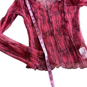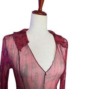 Free People Sheer Crinkled Mesh Blouse Red Pink Purple Tie-Dye Size Small
