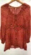 Bohemian. Floral. Color orange. 3/4 sleeve. Buttons. Round neckline. Sheer. Crinkle fabric