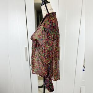 Free People Sheer Floral Collared Button Down Blouse. Super cute and stylish and also super thin and airy. Button down. 2 pockets on front, roll up sleeves. Excellent condition. LIKE NEW!!