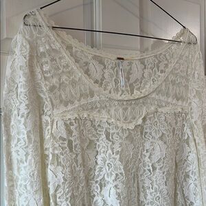 Free People Sheer Floral Lace Ruffled Blouse with Bell Sleeve - Size Small