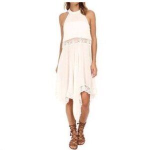 Elevate your wardrobe with this stunning Free People sheer lace panel dress in a beautiful beige blush color.