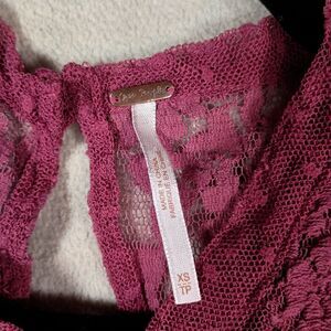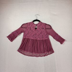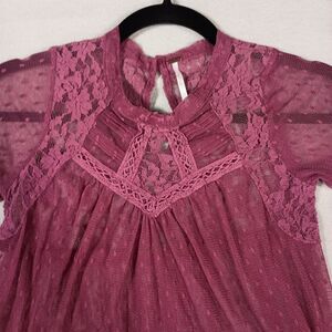 Free People Sheer Lace Whimsigoth Top Womens XS Purple Mesh Cottage Victorian