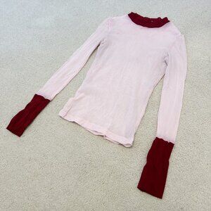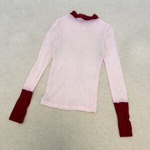 Intimately Free People pink and maroon sheer mesh long sleeve top; some color bleeding around neck area