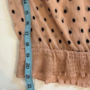 Free People Sheer Pink Black Polka Dot Long Sleeve V-Neck Tie Front Blouse Top