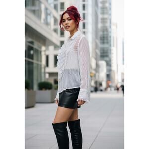 Free People Sheer Polka Dot Ruffle Blouse M – Flirty, Feminine & Effortless!