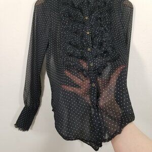 Free People Sheer Polka Dots Long Sleeve Button Up Shirt Top Blouse Black Size S