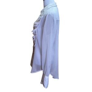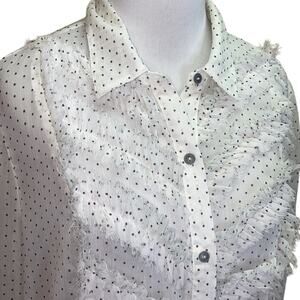 Free People Sheer White Polka Dot Ruffle Button Up Blouse Size Medium