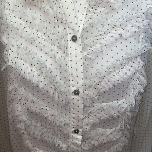 Free People Sheer White Polka Dot Dotty Chiffon Tuxedo Ruffle Button Up Blouse Size Medium