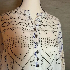 Free People Shibori Ivory Print Long Sleeve Button-Up Tunic Dress Womans Size XS