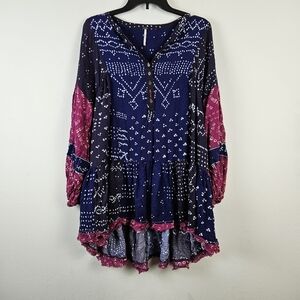 Free People Shibori Long Sleeve Tunic Dress in blue and pink blue Size M