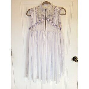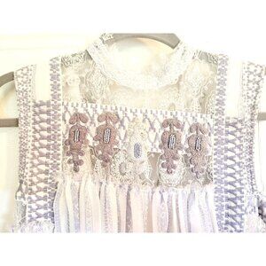 Free People Shift Dress M Ivory Lavender Embroidered Penny Georgette Babylon