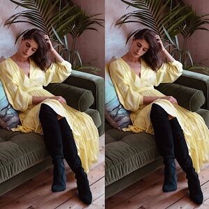 Free People Shiny I Need To Know Maxi Midi Dress Butter Yellow