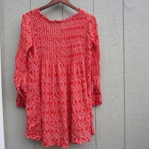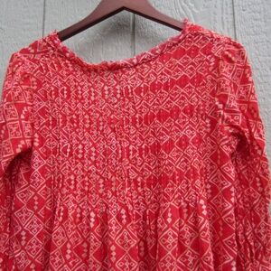 Free People Shirt Dress Womens M Mini Marlow Sheath Tie V-Neck Raw Hem Red BOHO