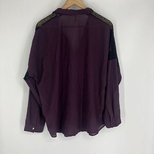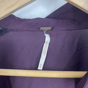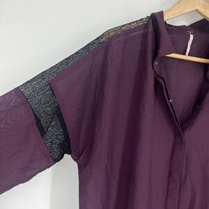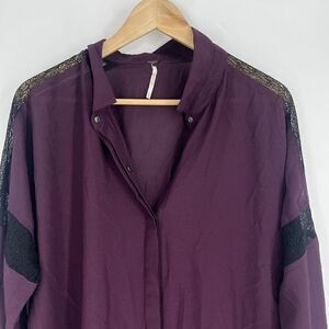Free People Shirt Size Medium Womens Purple Chiffon Blouse Black Lace Dolman