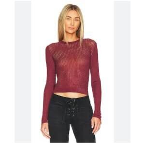 Free People Shirt Womens Large NWT Open Knit H2O Crew Cropped Raw Garnet
