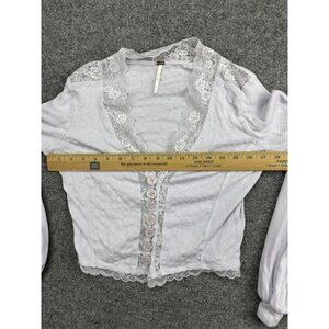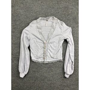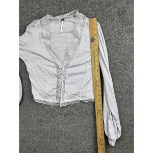 Free People Shirt Womens Medium Lavender Lace Trim Button Front Ribbed Cropped