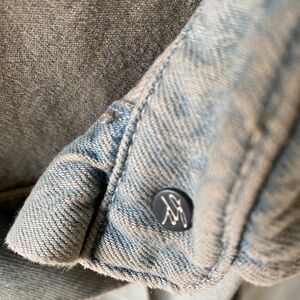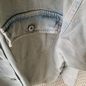 Purchased directly from Free People. Worn once but it is too big for me. This is a denim jacket. The length is 31 inches, sleeve length is 21 inches and width of jacket is approximately 24 inches. Free People clothing runs big so a medium is still quite roomy.