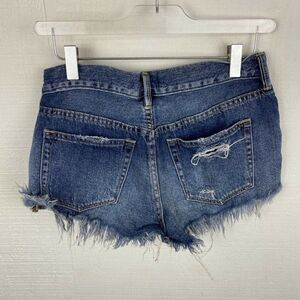 Free People Shorts 26 Womens Blue Distressed Cutoff Button Fly Mid Rise Denim