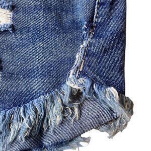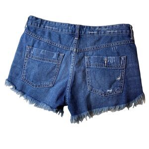 Free People Shorts Denim Cut Off Raw Hem Distressed High Rise 27 Frayed. Side seam has been repaired please see photo. 100 % cotton. Zipper fly. Pockets.