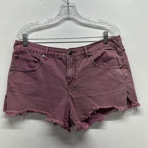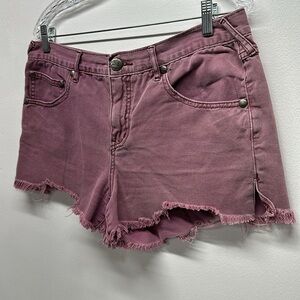 Free People Shorts High Rise Distressed Cut Off Raw Hem Cotton Purple Size 31