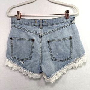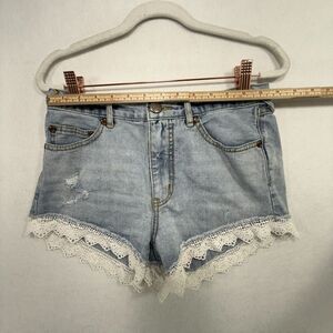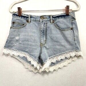 Free People Shorts Women 26 Blue Denim Laced Trim Crochet Light Wash Boho Beach