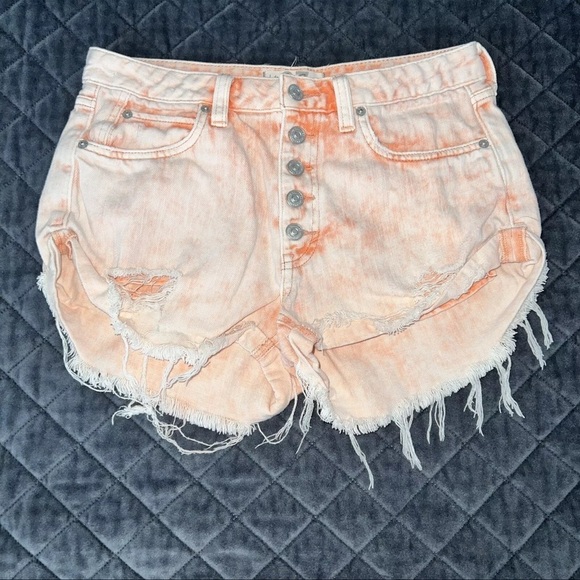 Free People Shorts Women Size 27 Orange Button Fly Mini Jean Romeo Cut Off L