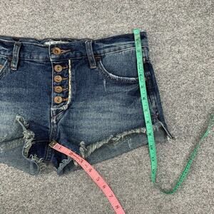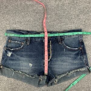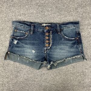 Free People Shorts Womens 24 Denim Distressed Exposed Button Fly Cuffed Raw Hem