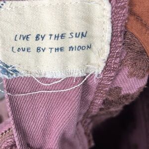 Description- maroon/burgundy/purple/pink-ish. High waisted. Raw/frayed hem. Floral embroidery all over. Bit of a dip dye look.