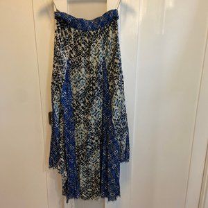 High-low maxi skirt. Mixed patterns, elastic waistband, raw hem. Very comfortable and lightweight.