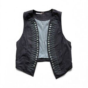 Free People Shrunken Military Vest Silvertone Embossed Button/Cord Accent Sz S