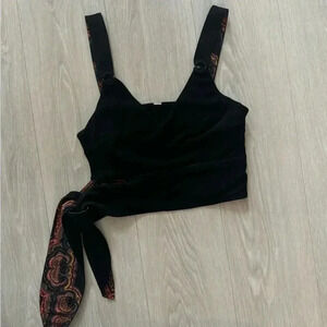 Free People Side Tie Paisley Bow tie Crop Tank Top in Black Women Small