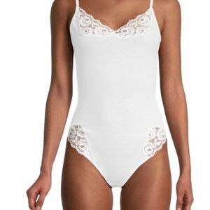 Free People Side of Sass White Cotton Lace Trim Bodysuit sz Large NEW