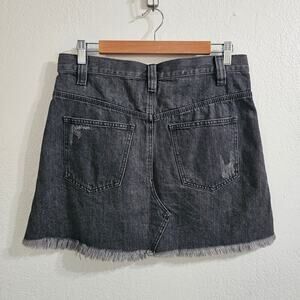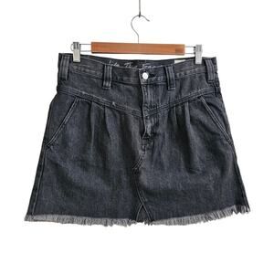 Free People Sidecar Frayed Denim Skirt in Sanded Black Size 28